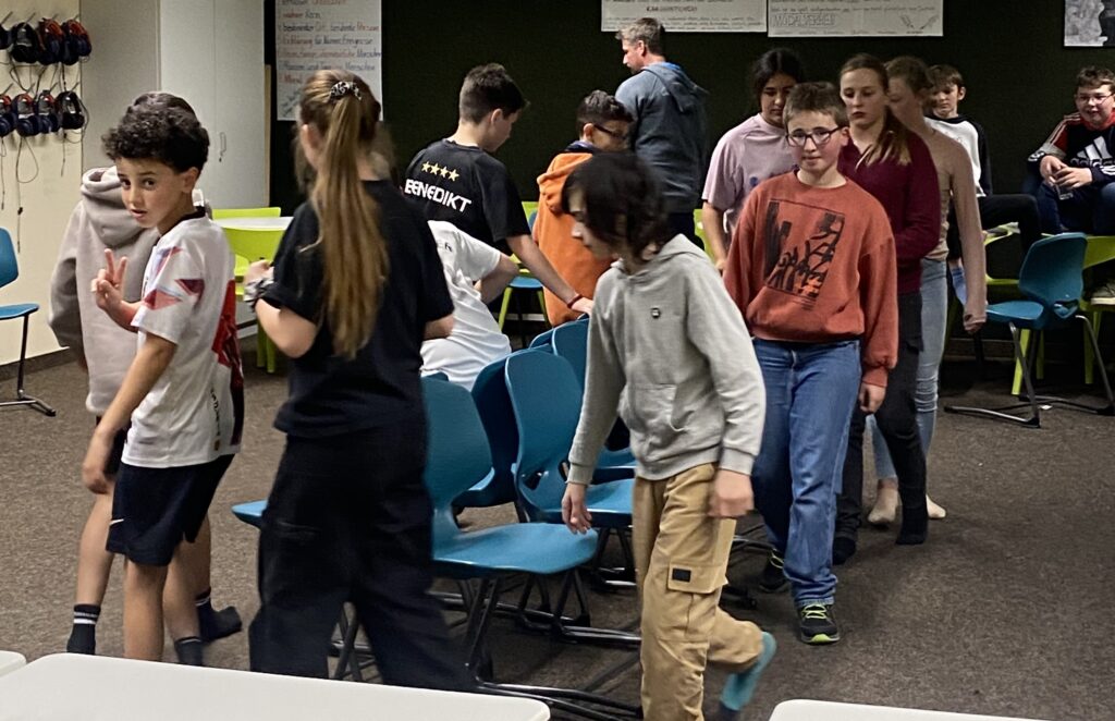 Am schulfreien Buß- und Bettag trafen sich die Schülerinnen und Schüler der 6. Klasse um 19:00 Uhr im leeren Schulhaus – schwer bepackt mit Luftmatratze und Schlafsack.