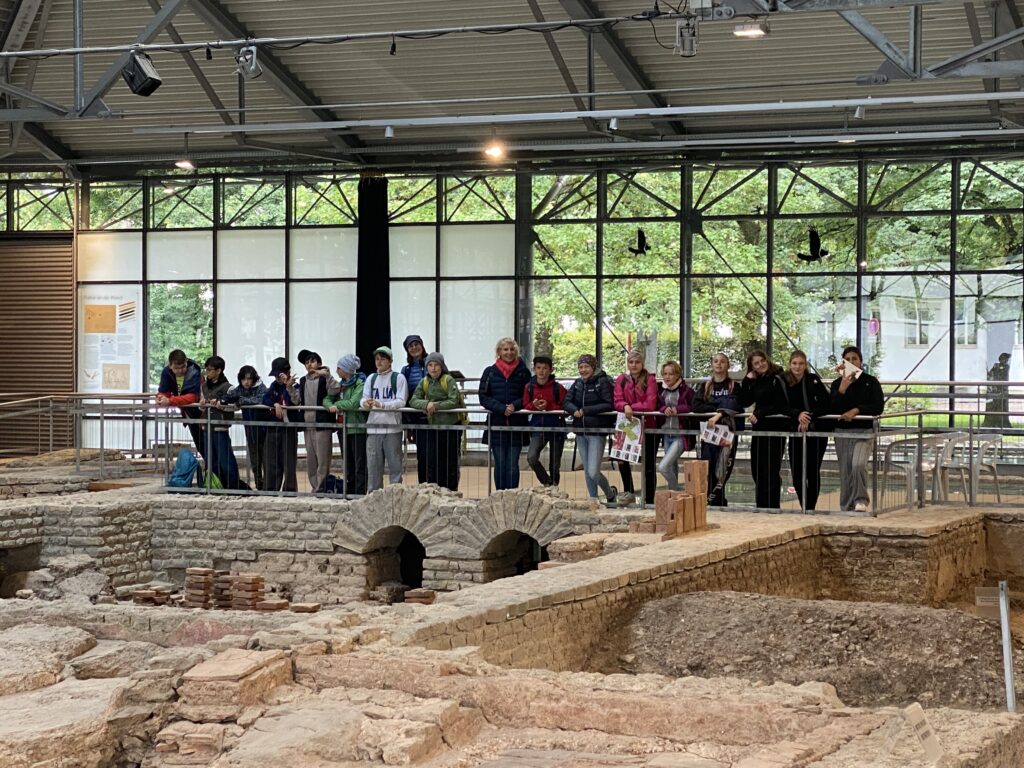 Am Dienstag, den 30. September 25 machte sich die Klasse 6 auf den Weg nach Kempten. Sie besuchte den APC, den Archäologischen Park Cambodunum. In diesem Museum sahen die Schülerinnen und Schüler, wie die Römer damals zur Zeit des Imperium Romanum in Kempten lebten. Besonders beeindruckte die Kinder die Ausgrabungen der Therme mit den vielen Gegenständen aus der damaligen Zeit. Mit Aufgaben am iPad machten sie sich anschließend im Tempelbereich auf die Suche nach Antworten. Dabei erfuhr die Klasse noch viele Informationen über das Leben um ca. 100 n. Chr. Besonders freute die Schülerinnen und Schüler, dass sie für ihr vorbildliches Verhalten in der Anlage von den Museumsmitarbeitern gelobt wurden. Die anschließende freie Zeit im Forum gefiel allen, auch wenn sie viel zu kurz war.